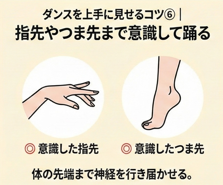 ダンスを上手に見せるコツ⑥|指先やつま先まで意識して踊る
